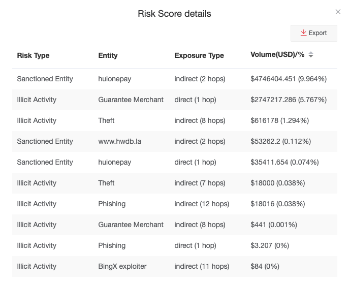 AML Scoring Function: By combining entity ownership of the address, historical transaction behavior, and intelligence from SlowMist’s threat database, MistTrack delivers a comprehensive risk assessment of wallet addresses. At present, it has identified 14 categories of risk sources: