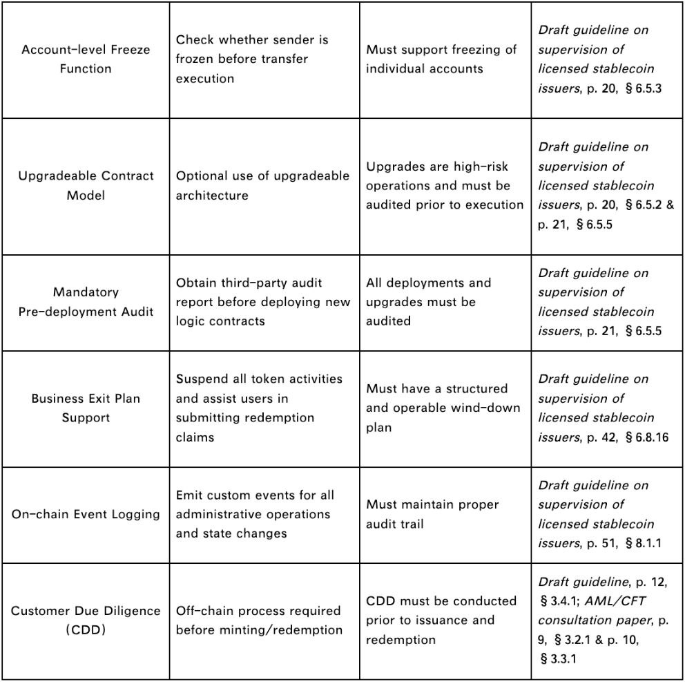Although the Guidelines effective August 1, 2025 have refined and strengthened many specific requirements compared to the Consultation Paper, SlowMist’s previously developed compliance solutions based on the Paper — especially the “SlowMist: Smart Contract Implementation Guidelines for Stablecoin Issuers in Hong Kong” and The “SlowMist: Leading Compliance and Security for Hong Kong Stablecoin Issuers” co-developed with ecosystem partners — remain highly compatible as compliance references for the current Guidelines in terms of logical framework, systemic design, and technical modules.
